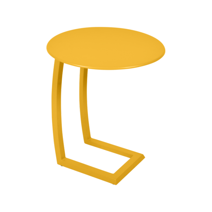 Alizé Table Basse Déporté Ø 48 de la marque FERMOB est ultra légère grâce à sa structure en aluminium. Elle peut être déplacée très facilement.