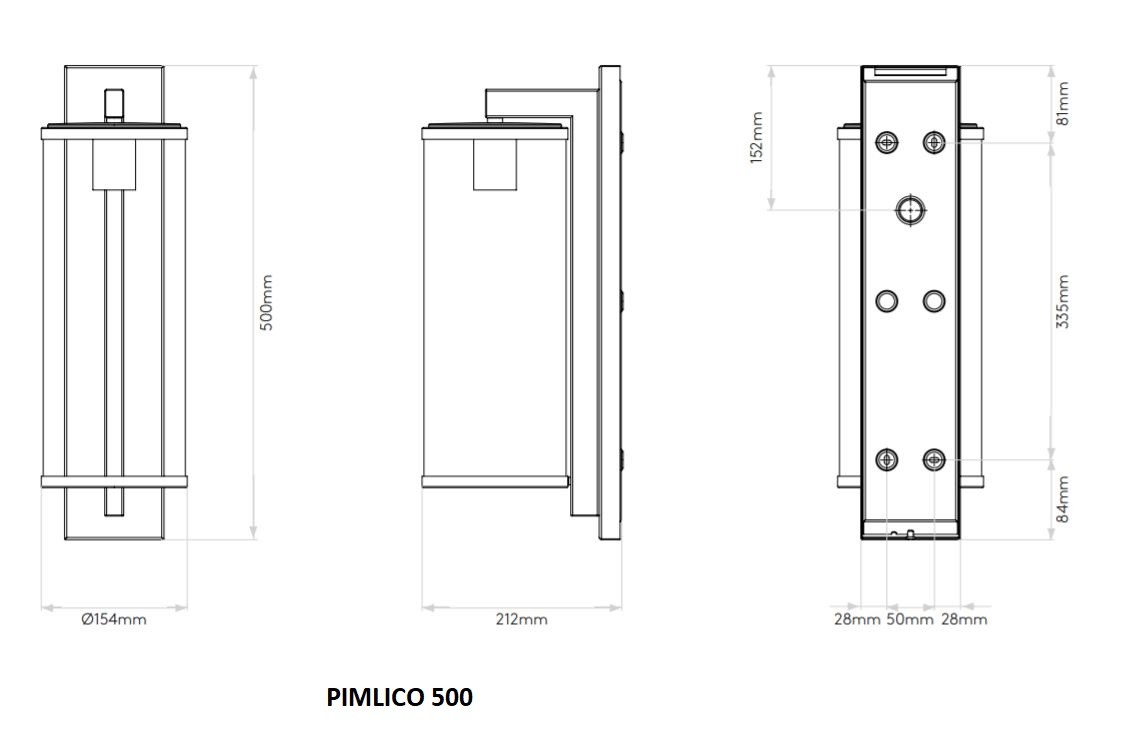 La version Pimlico 500 mesure 50 cm de hauteur, de 15,4 cm de largeur et 21,2 cm de profondeur.
