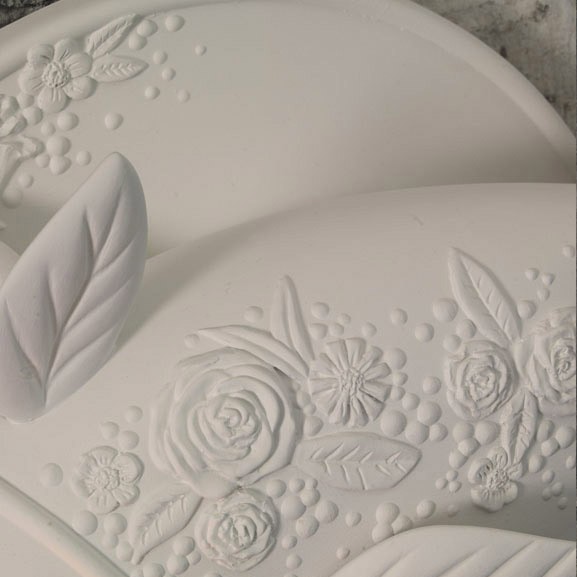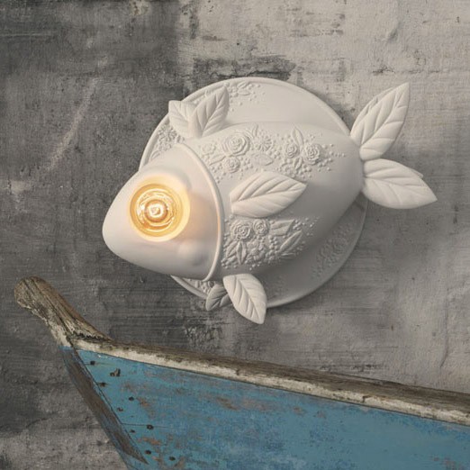 Aprile est un poisson applique en céramique blanche avec des feuilles luxuriantes et de belles fleurs à la place des écailles.