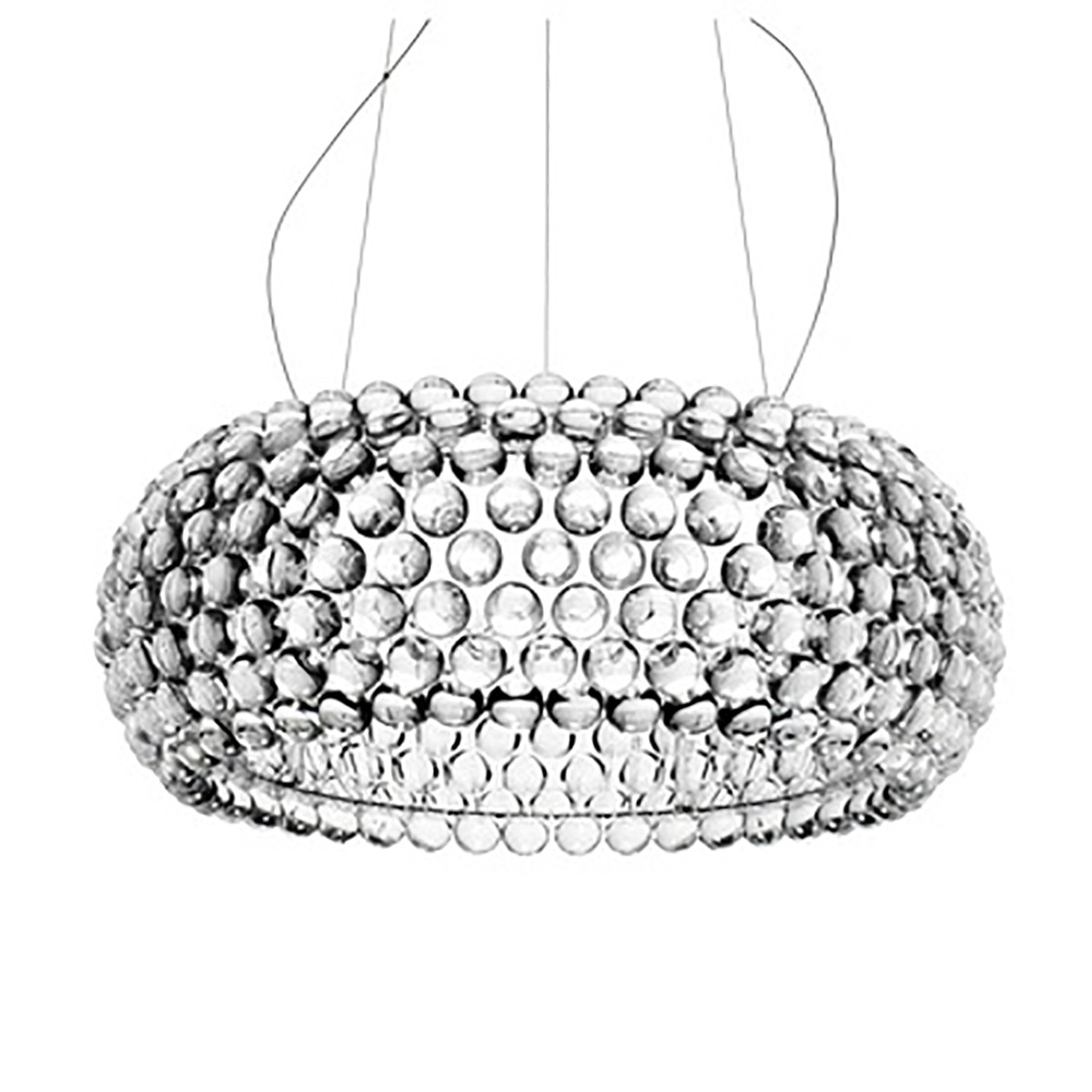 Caboche Media LED de Foscarini est composé des plus que 150 sphères en méthacrylate qui multiplient l’éclairage et l’enrichissent de magnifiques reflets à l’intérieur d’elle et de ses environs.