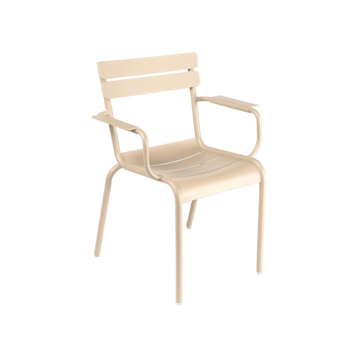 Luxembourg Fauteuil est un fauteuil empilable (Fauteuil x 8) en structure tube aluminium avec dossier/assise/accoudoirs en lattes galbées aluminium extrudé.