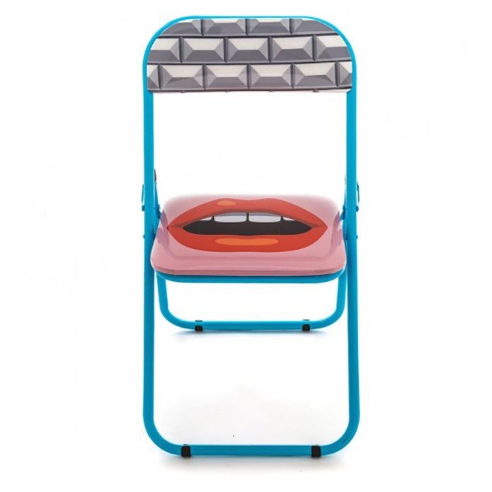 Folding Chair comprend des chaises pliantes très colorées, ornées de motifs décalés et non-conventionnels :