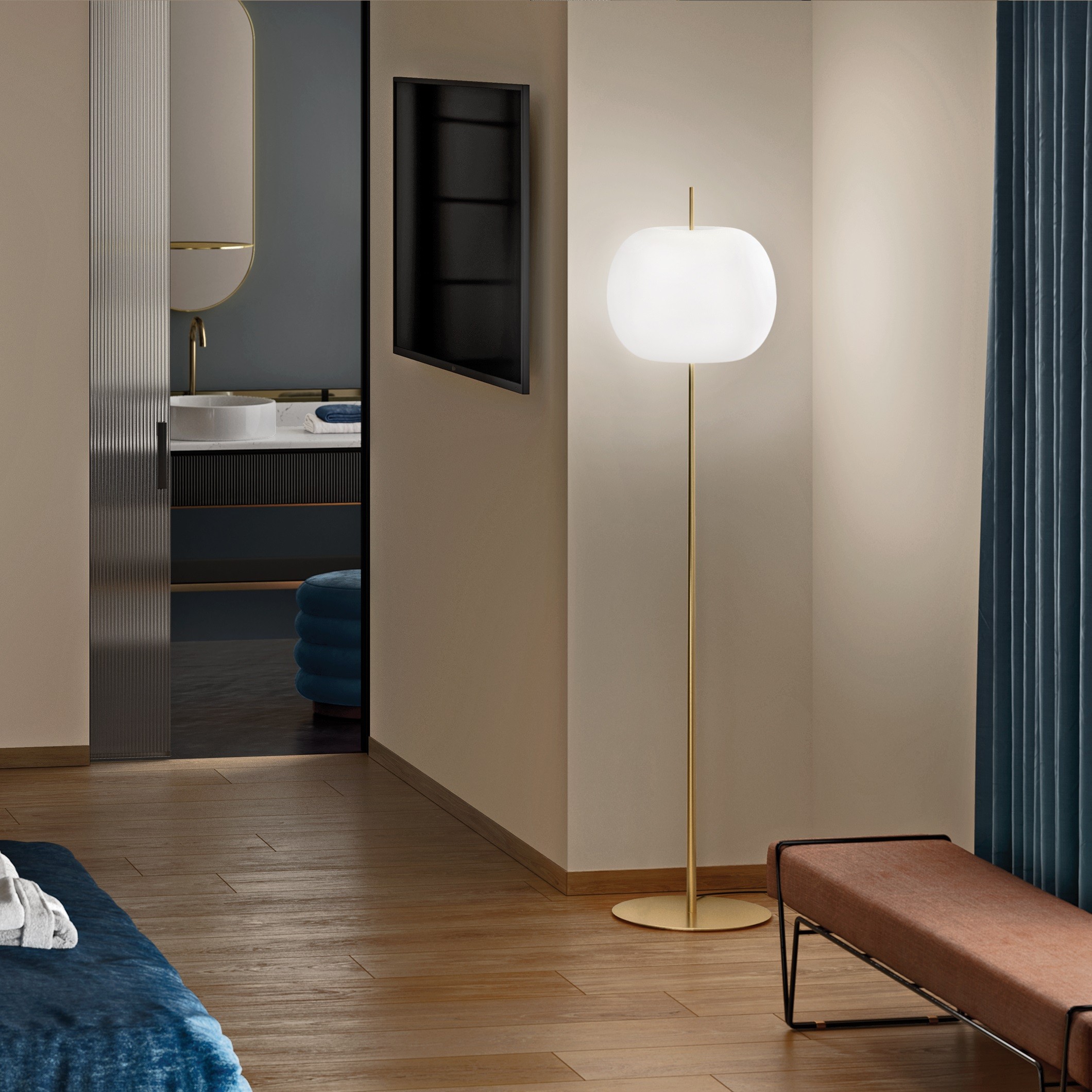 Cette collection se décline en quatre types de luminaires (suspensions, plafonniers, lampadaires et lampe de table).