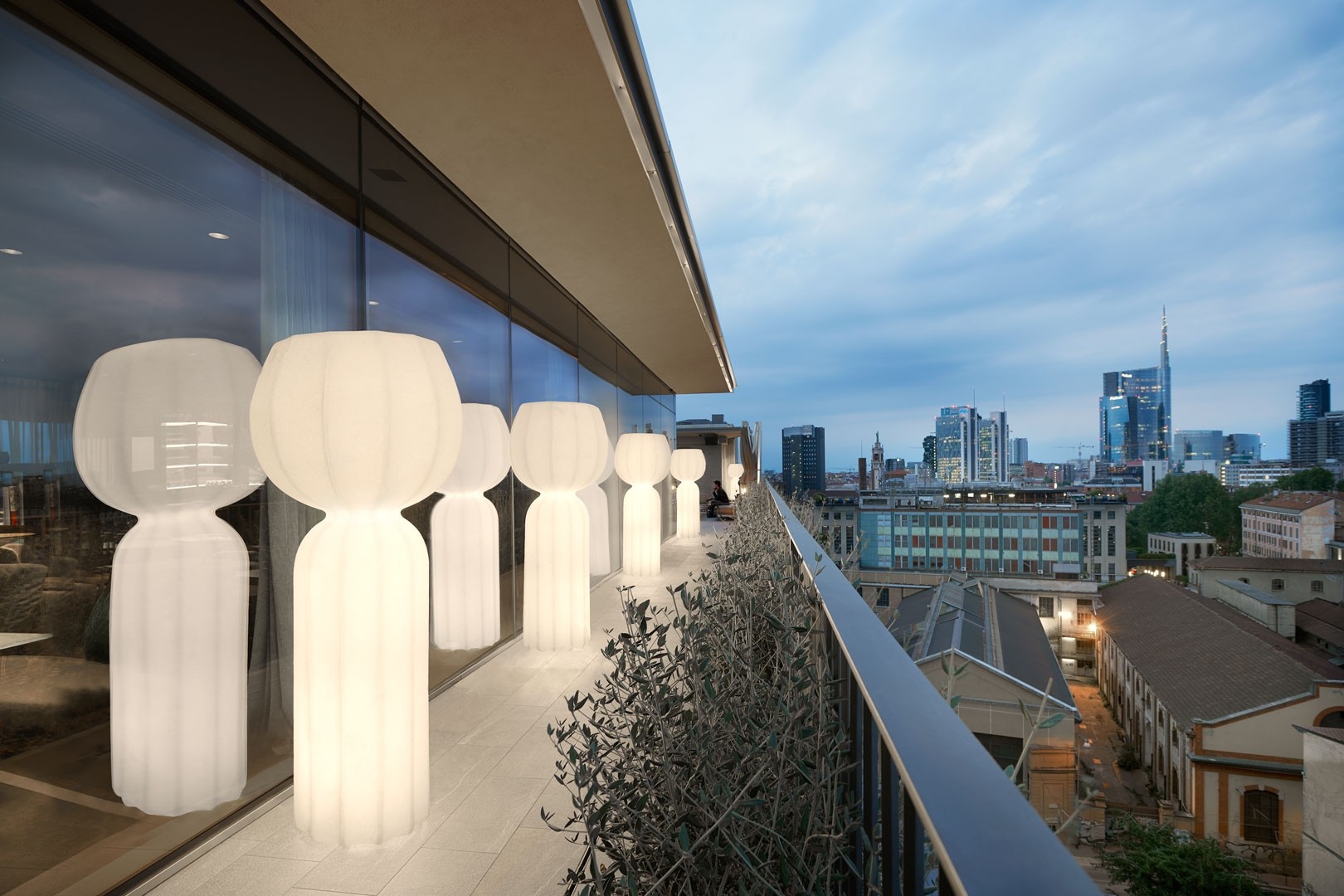 La structure particulière en polyéthylène, avec sa texture de surface et ses nervures, est un hommage à certaines icônes du design italien du siècle dernier. Son design est idéal pour créer des effets de lumière douce. Cucun convient à la décoration des jardins et des espaces extérieurs Grâce à sa forte présence décorative, il est idéal pour meubler les espaces domestiques et commerciaux.