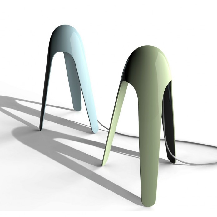La structure de Cyborg Lampe De Table LED est fabriquée par fusion d’aluminium, disponible en 5 finitions: blanc, bleu clair, vert clair, gris clair et aluminium naturel.