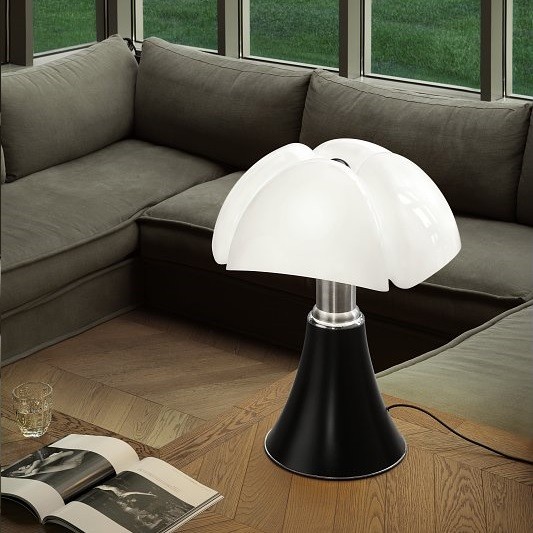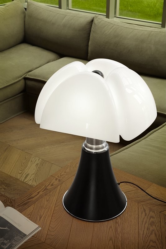 Pipistrello : l'objet culte du design est exposé dans les plus grands musées du monde ! L'incontournable Pipistrello a été créée par Gae Aulenti en 1966. Cette lampe avec son abat-jour aux formes onduleuses ressemble à une chauve-souris (pipistrello en italien). Un système télescopique en acier inoxydable permet de régler sa hauteur (66-86 cm). Le diffuseur est en méthacrylate blanc opale et la base en métal laqué blanc ou marron foncé. La Pipistrello de Martinelli fait partie de ces rares objets faisant partie de notre patrimoine visuel. La lampe Pipistrello est une pièce maitresse dans la décoration de votre salon ou salle à manger. Elle peut être posée aussi bien sur une comode, en bout de canapé. Elle sera superble également comme lampe de bureau. Vous pourrez également mettre la lampe Pipistrello de Martinelli Luce en lampe de chevet grâce à son pied téléscopique sa dimension s'adaptera à vos envies.