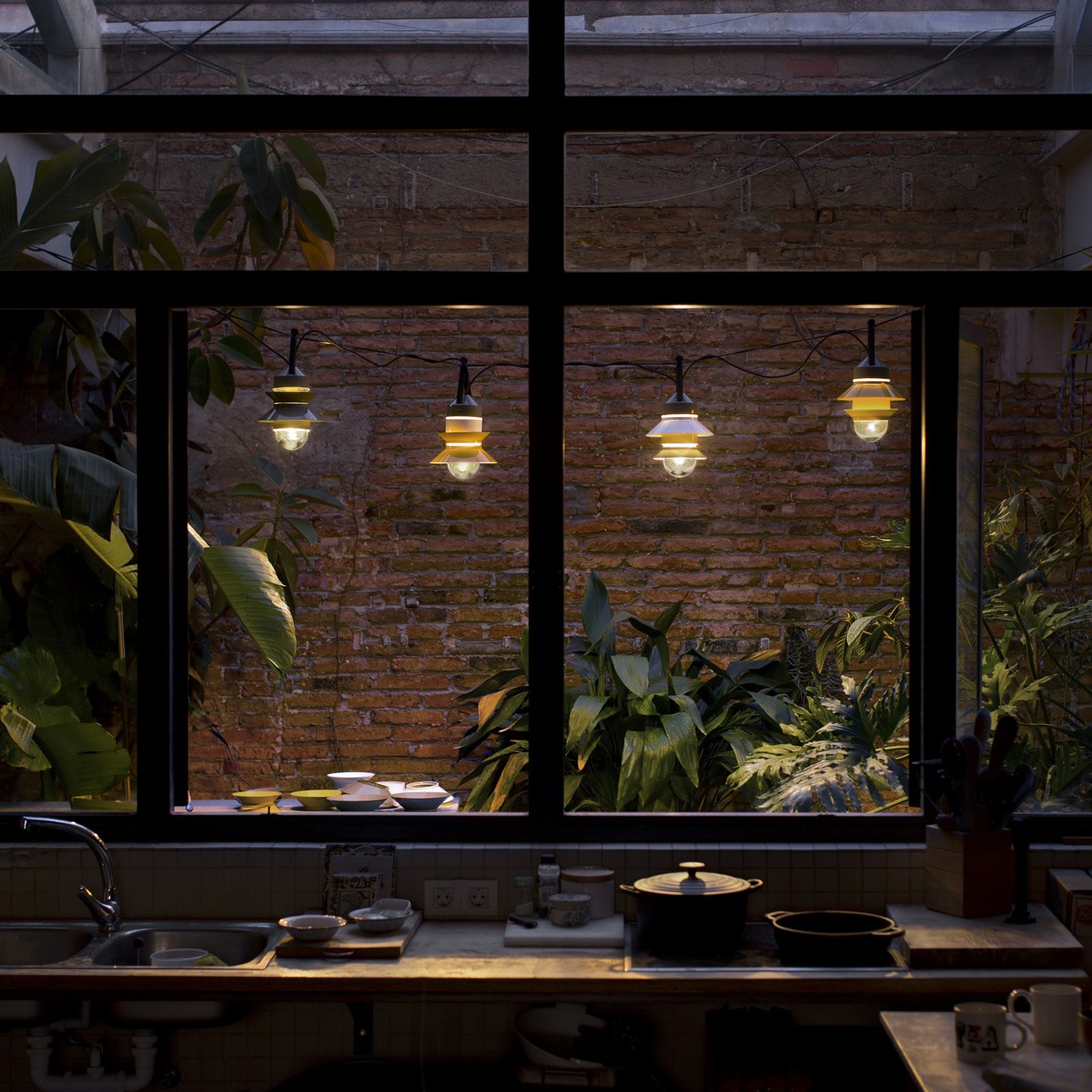 Inspiré par les lanternes sur les bateaux de pêche, cette collection de lampes personnalisables en plein air vous permet de créer plusieurs compositions.