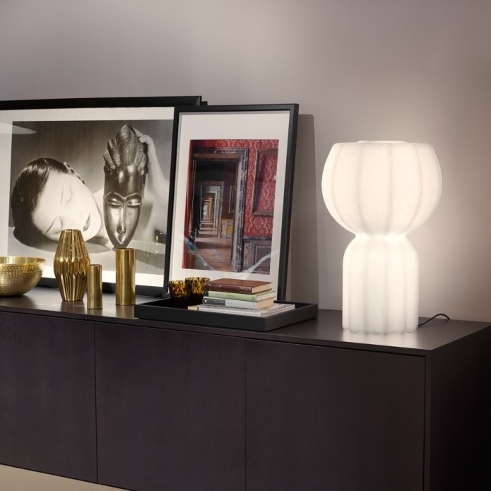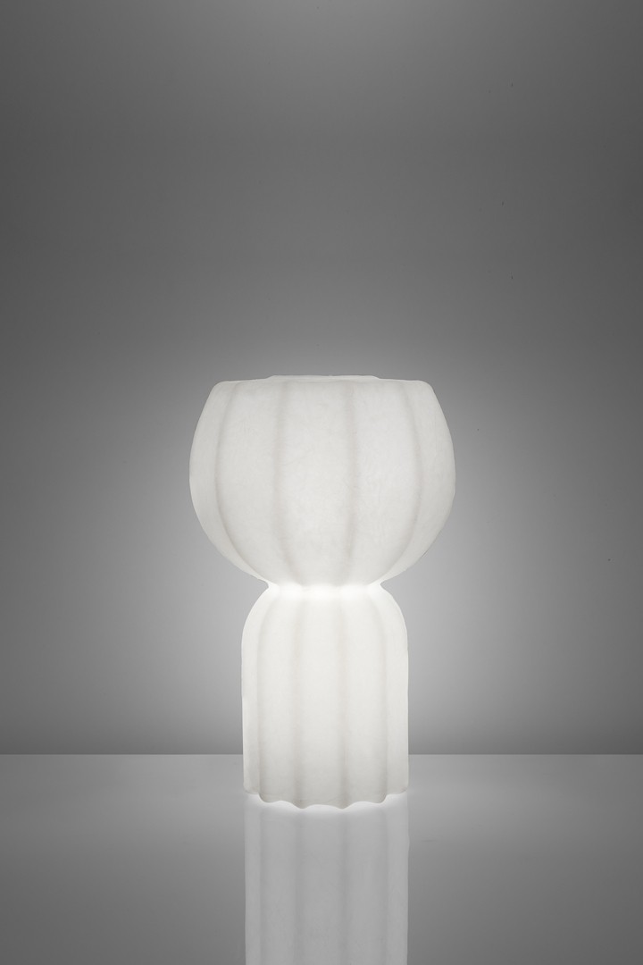 Après le grand succès de Cucun, Lorenza Bozzoli s’inspire des formes de fleurs pour créer Pupa, une version plus petite et pour intérieur du grand lampadaire. La texture qui rappelle l'ancien papier japonais, caractéristique de toute la famille, embellit également toute la surface de Pupa, créant des effets de lumière doux et accueillants.