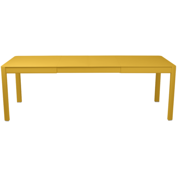 Modularité oui, mais invisible ! Sans allonge, avec 1 ou 2 extensions, rien ne vient entraver sa ligne harmonieuse. Mise au point par les équipes Fermob, l'extension est facilitée par un système téléscopique avec mécanisme sur roulements, l'installation des allonges simple et leur rangement pratique grâce au coffre intégré sous le plateau.