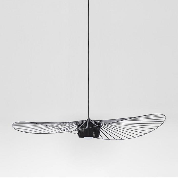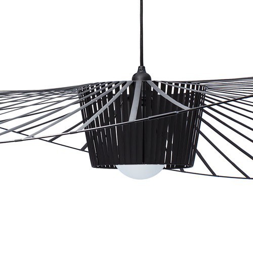 La suspension Vertigo de Petite Friture est à la fois graphique et aérienne avec des dimensions XXL qui s'adapte grâce à sa structure aérienne au grands comme au petits espaces. Avec sa forme légèrement incurvée elle recréé un espace intime telle une cabane.