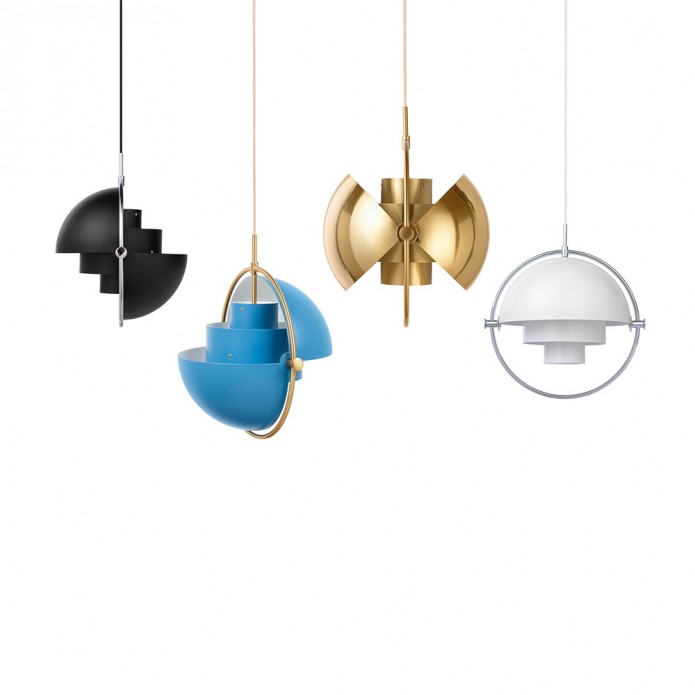 Multi-Lite Suspension du designer Louis Weisdorf pour le fabricant GUBI est une lampe qui peut être transformée en plusieurs modèles qui permettra à la lumière d’être dirigé vers le haut, le bas pour émettre un art asymétrique de la lumière.