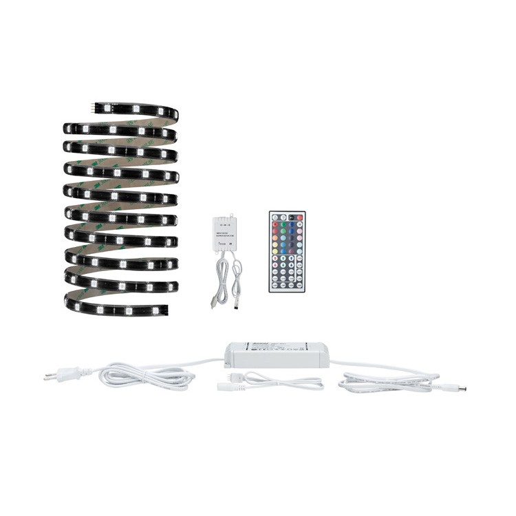 YourLED est fourni avec télécommande pour la fonction Marche/Arrêt, la variation d'intensité, la commande et la programmation et d’un kit prêt à brancher composé d’une alimentation 230/12V, câble d'alimentation et fiche secteur avec un éclairage LED RGB d’ambiance.
